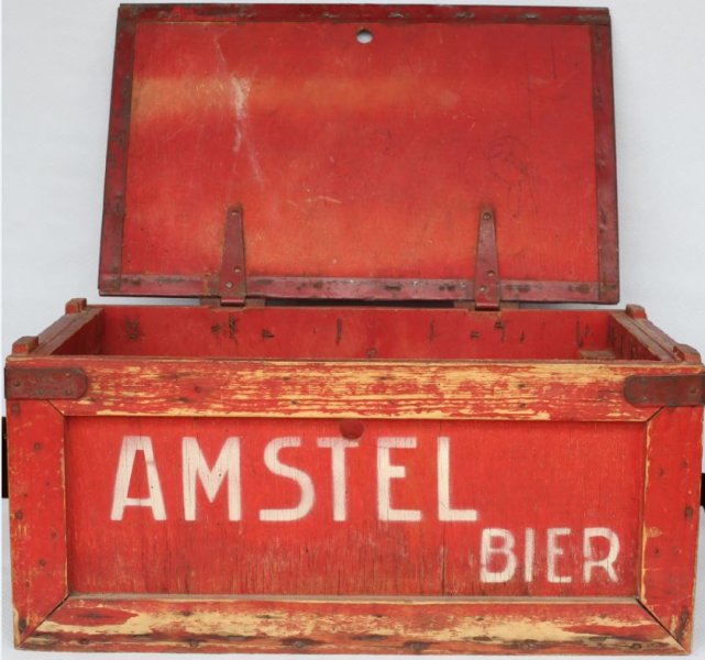Robert erzählt: Diese rote Amstelbierkiste stammt aus meinem Geburtshaus, das Café "Duinzicht" im Jahr 1936 in Julianadorp gebaut am Ende des "van Foreestweg" direkt an den Dünen. Ich bin der einzige in unserer Familie, der in einem Café geboren wurde! Das Café wurde vor dem Krieg in der besseren Jahreszeit viel besucht, meist mit dem Fahrrad, sogar aus Amsterdam, von nah und fern, aber auch von Friesland über den damals neuen Afsluitdijk, um in der Nordsee zu schwimmen, denn in Friesland waren nur wenig Strände.