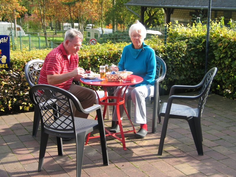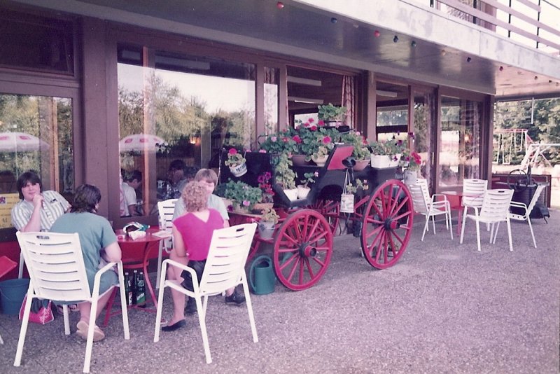 Einer der Sacheinlagen war Terrassenmobiliar. Die Stühle waren aus Metall und Kunststoff hergestellt und haben nur ein paar Saisons überlebt. Die Tische aber waren aus Metall und von guter Fabrikation, und dank guter Pflege stehen sie noch heute im Jahr 2016 auf unserer Terrasse.