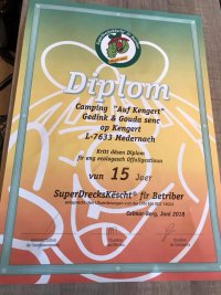The Minister of Tourism Lex Delles awarded the official classification badge to Camping Auf Kengert (4 stars) on 13 July 2019. The campsite is the first of its kind in Luxembourg to receive the new official classification. The Luxembourg campsites are assessed on the basis of a catalog of criteria and an on-site inspection. They are divided into different categories, ranging from one to five stars.