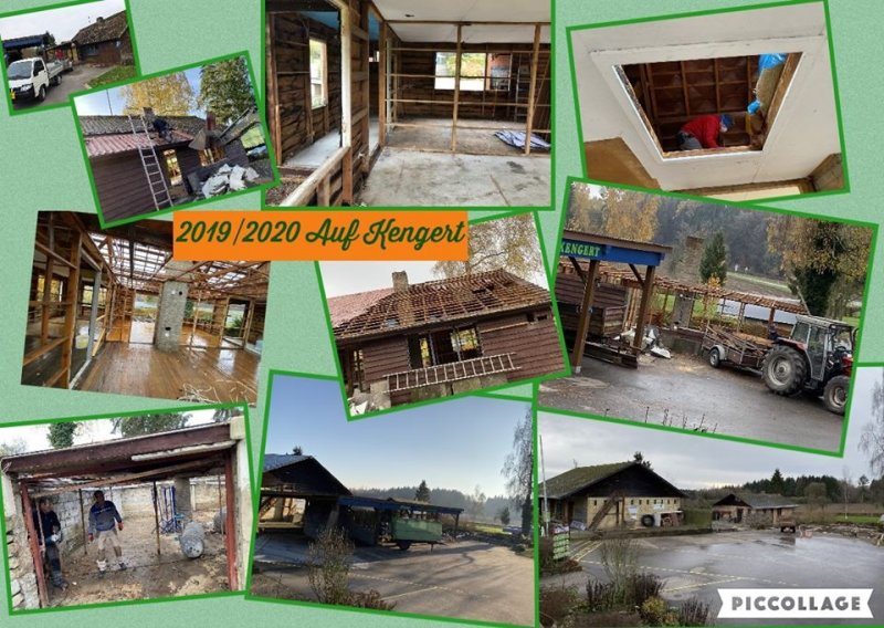 U ziet hier een collage van de werkzaamheden die we deze winter al hebben gedaan, nl. het afbreken van het oude houten huis en de carpoort bij de ingang van de camping. Hierdoor wordt de parkeerplaats ruimer, en kunnen we de kelder van het oude huis gaan gebruiken voor het ondergronds verzamelen van afval en recycling