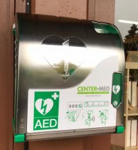 de defibrillator is aangekomen, hiermee kunt u ook 112 bellen in geval van nood.